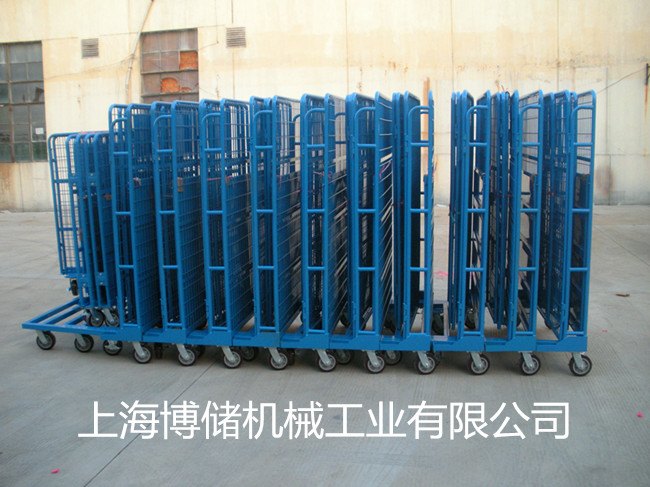 物流臺(tái)車又叫載貨臺(tái)車或籠車,是一種安裝有四只腳輪的運(yùn)送與儲(chǔ)存物料的單元移動(dòng)集裝設(shè)備。常用語大型超市的物流配送或工廠工序間的物流周轉(zhuǎn)。
