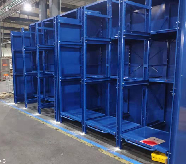 存放大于1000KG以上的模具,都是用博儲(chǔ)全抽模具架,重量大的模具,體積也是比較大的,吊裝存取的時(shí)候,為了安全都會(huì)把整個(gè)層板全部抽出,再存取。